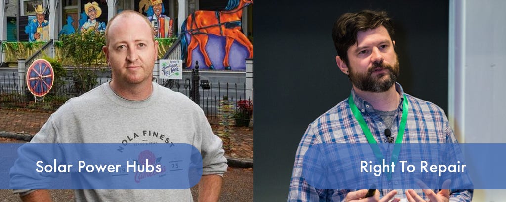 Ralph welcomes two “doers” to the program, first Devin De Wulf, to tell us about how he and his group of community activists are protecting the food supply in his hometown of New Orleans by outfitting restaurants with solar panels that withstand power outages in a hurricane. Then Nathan Proctor of US PIRG tells us about his organization’s latest victory that gives consumers the Right to Repair their electronics, saving on money, toxic waste, and greenhouse gas emissions.