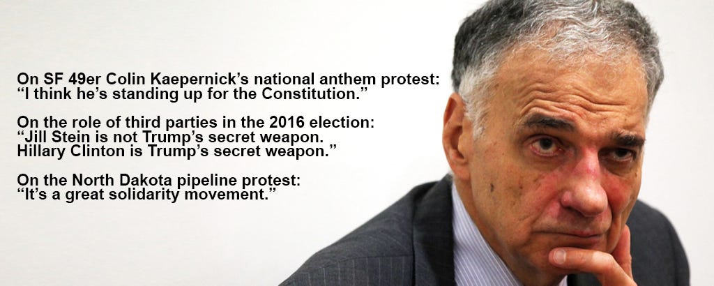 Ralph answers a whole slew of your questions, ranging from the Colin Kaepernick protest to voting your conscience to living off the grid. And we also feature two clips from the Breaking Through Power Conference, featuring Janine Jackson talking about the nature of corporate media and Robert Weissman, who tells us how the country is not as divided as the pundits would have you believe.